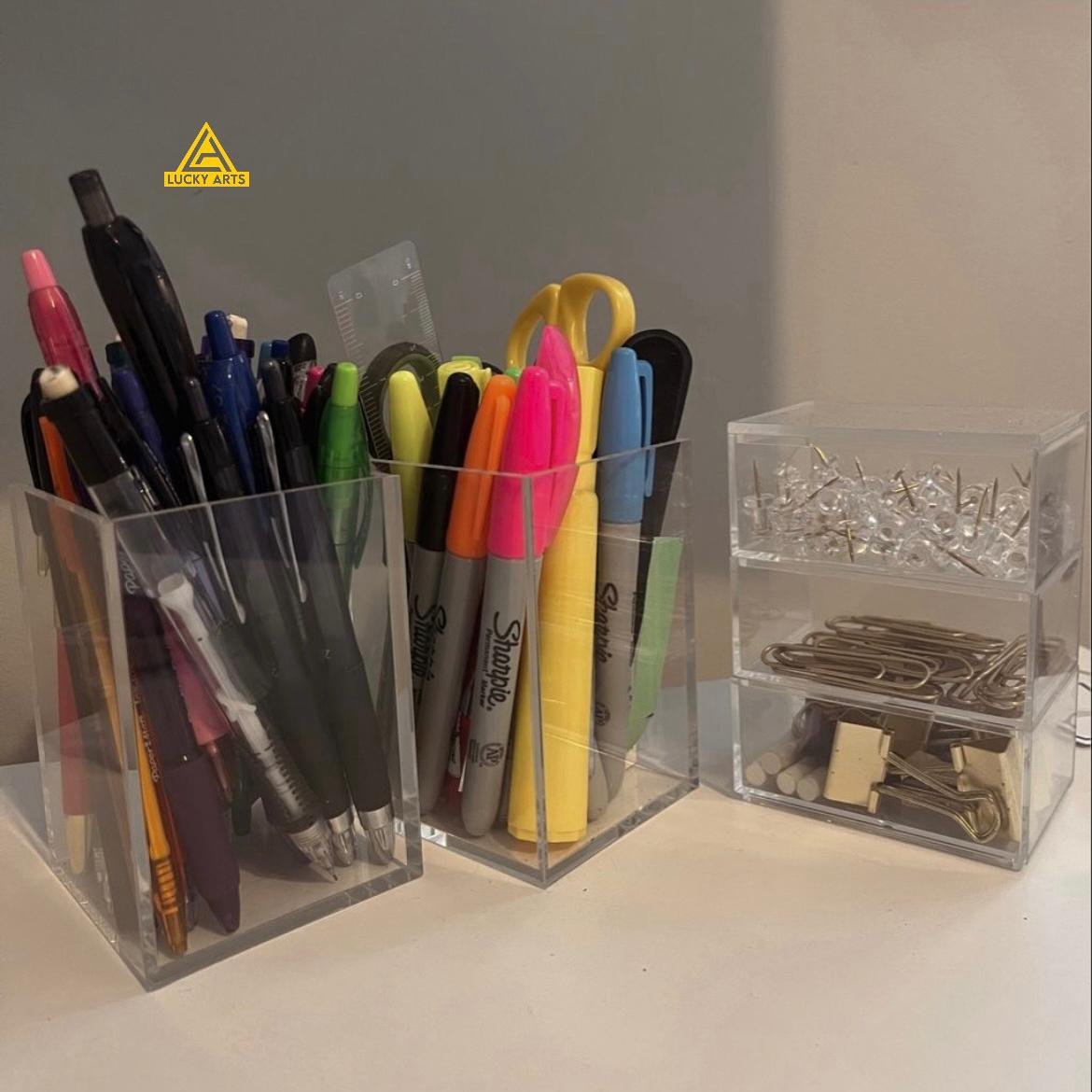 Acrylic Pen Holder | Transparent Desk Organizer | Stylish Stationery Stand for Office & Study