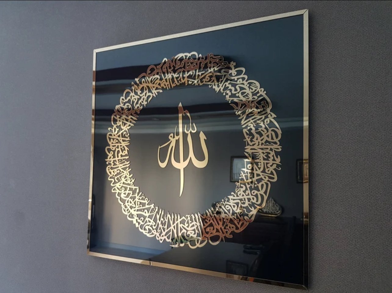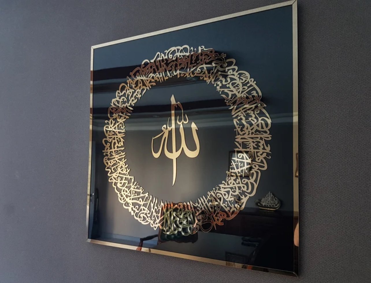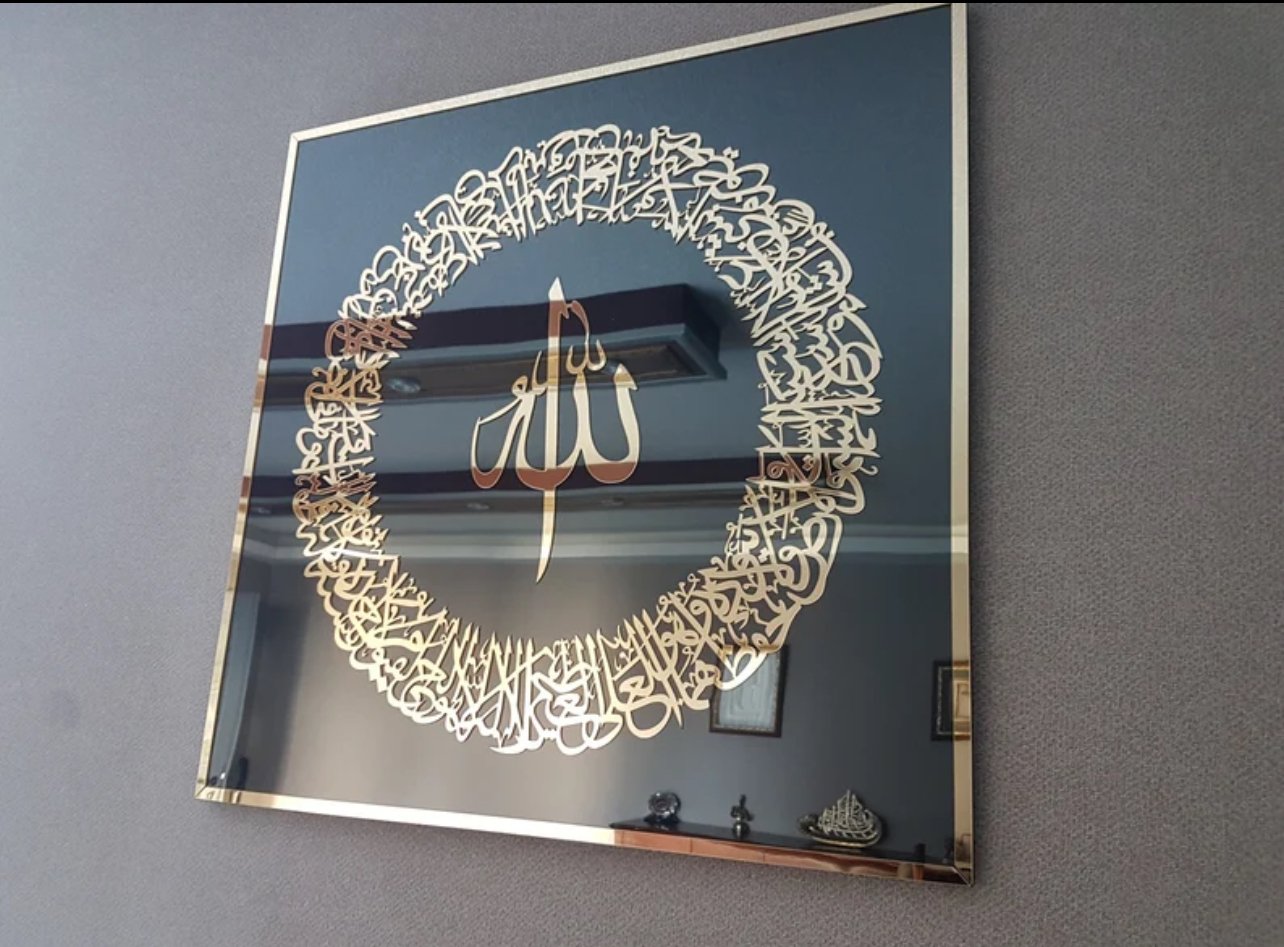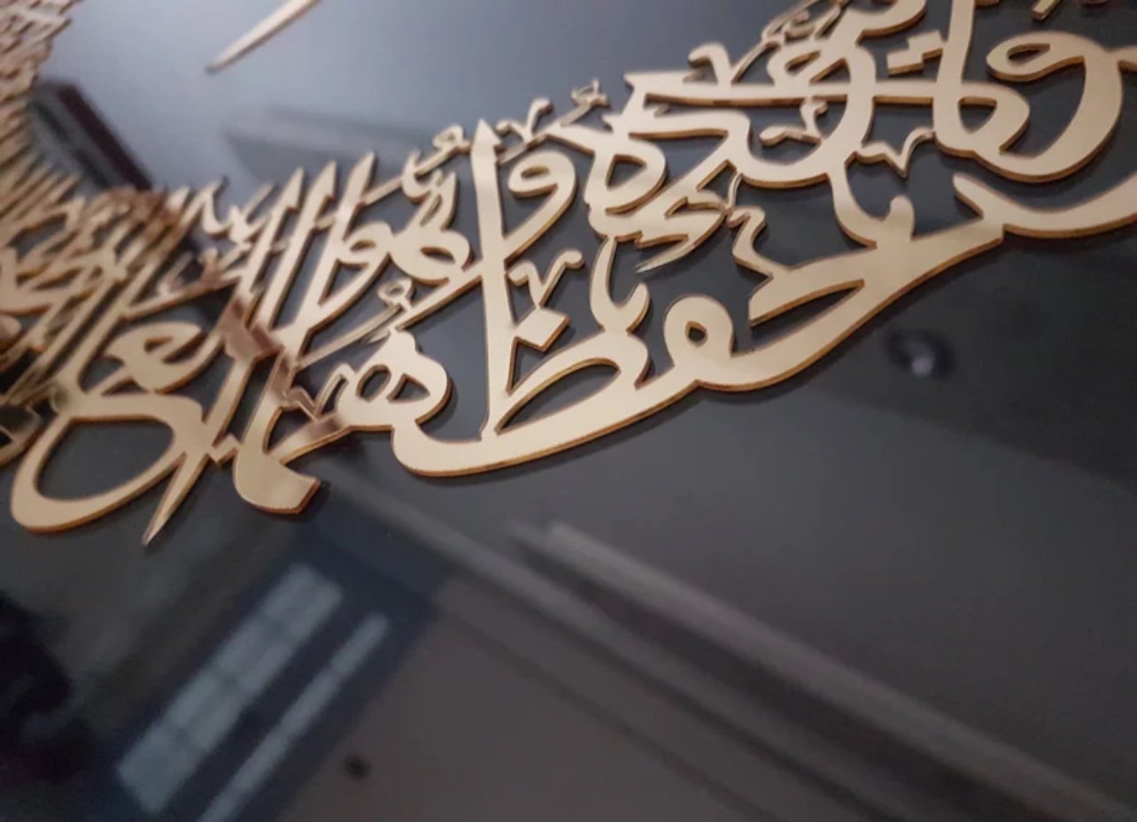 Elegantly crafted, our Ayatul Kursi Wall Frame from Lucky Arts is a stunning piece of art that adds a spiritual and decorative touch to your home. Featuring the sacred Ayatul Kursi verse, this frame is made of high-quality golden mirror acrylic, beautifully contrasted by a black acrylic base, creating a captivating visual appeal.