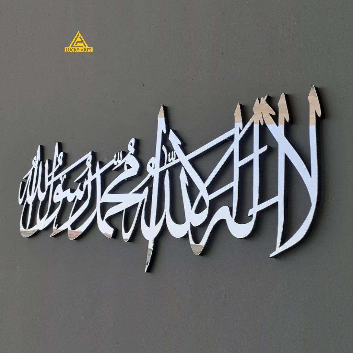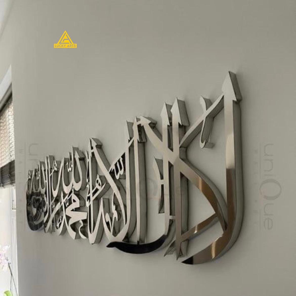 Featuring "La ilaha illallah Muhammadur Rasulullah" (There is no god but Allah, Muhammad is the Messenger of Allah), this 3D wall piece captures the heart of Islamic belief in striking visual form.