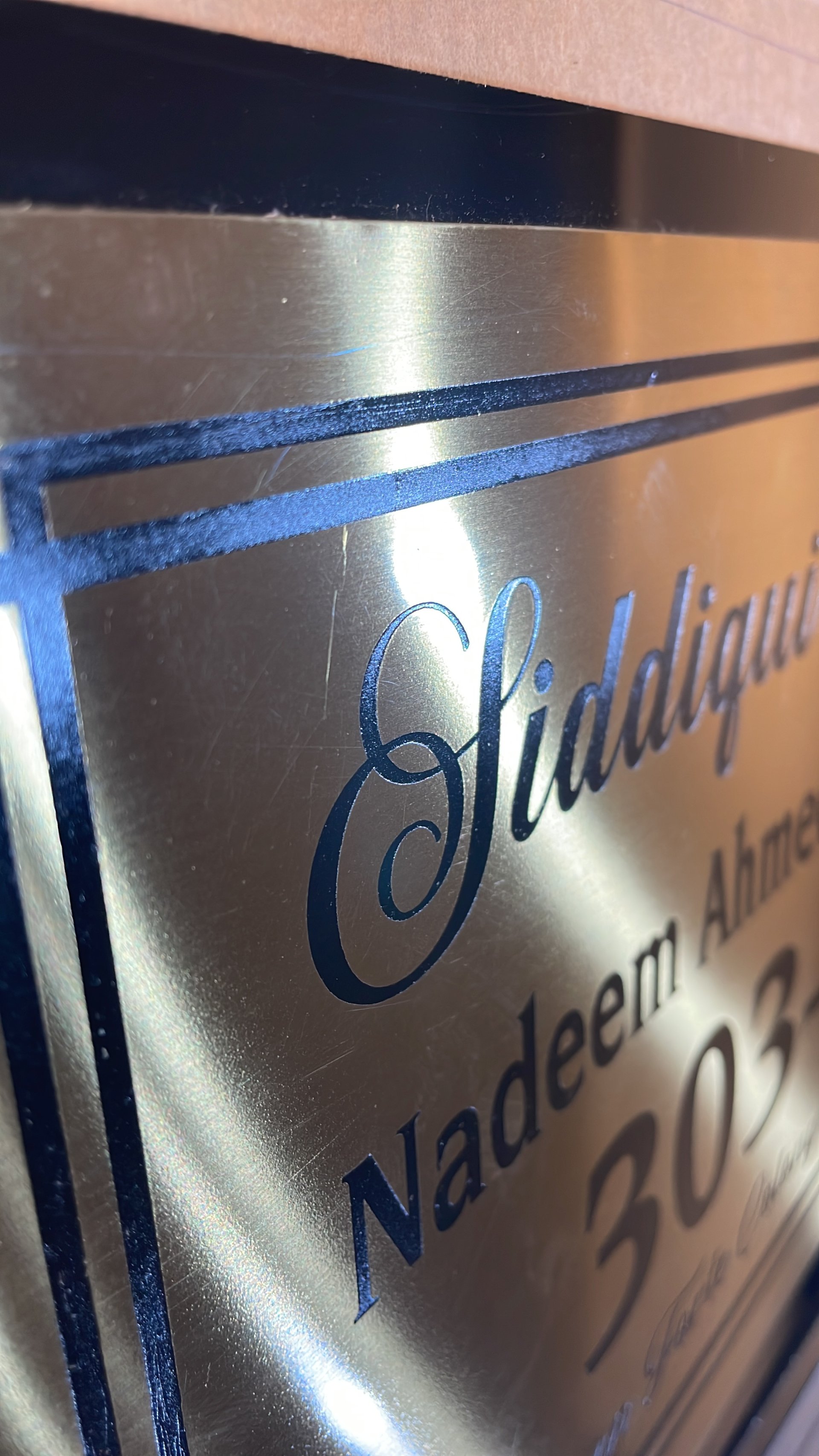 Exquisite Craftsmanship: Our skilled artisans at Lucky Arts meticulously engrave each name plate with utmost precision, ensuring a flawless and elegant design that adds a touch of grandeur to your home.