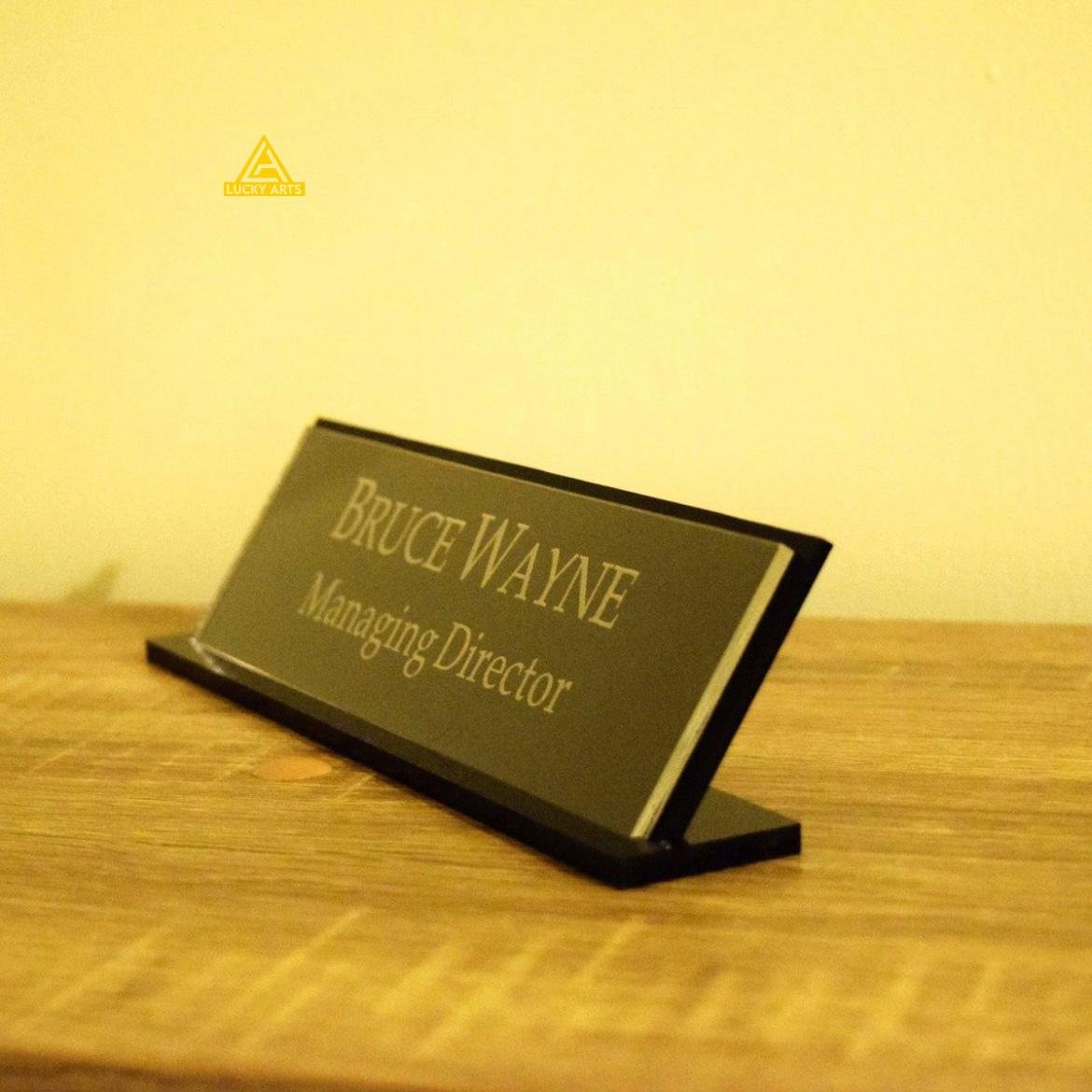 Acrylic Table Name Plate | Office Desk Name Sign | Custom Engraved Nameplate